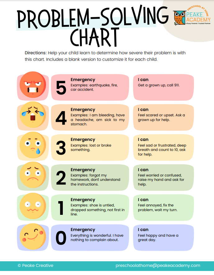 Here’s a FREE Problem-Solving Charts made by Peake Academy Preschool At Home .