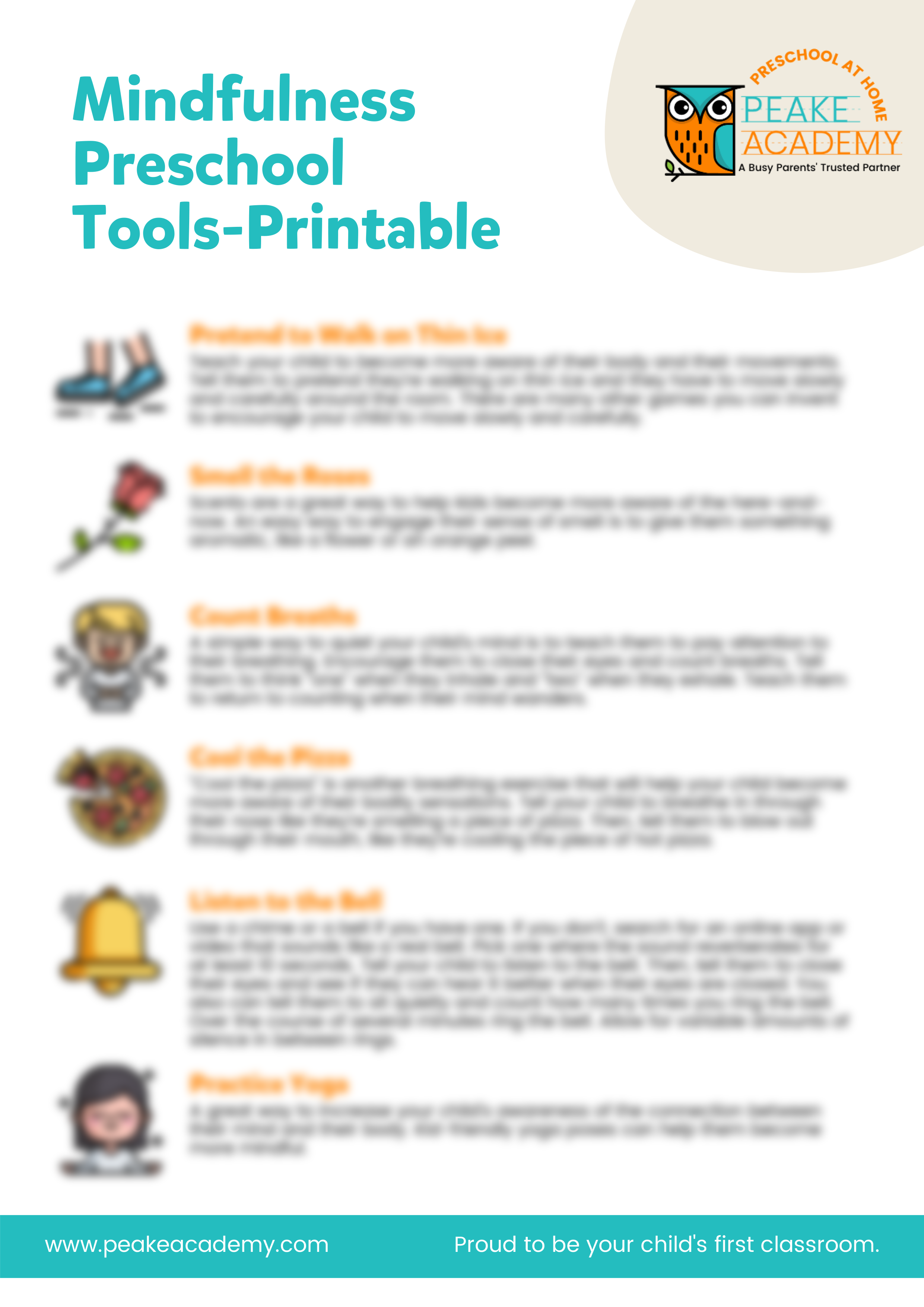 Want more support for navigating big feelings with confidence? Download our free Mindfulness Preschool Tools made by Peake Academy Preschool At Home—a set of calming activities designed to help your child (and you!) regulate emotions throughout the day.